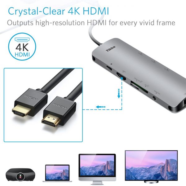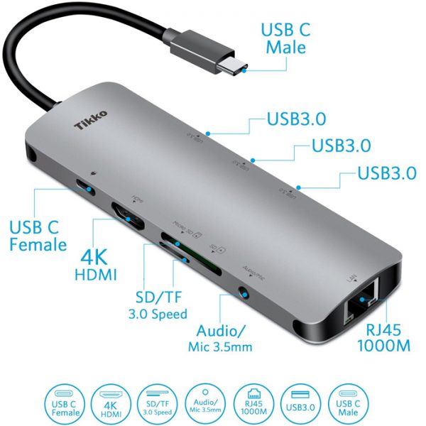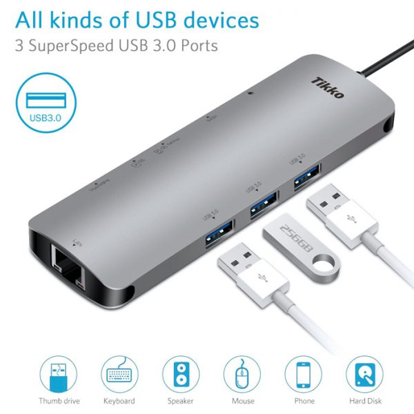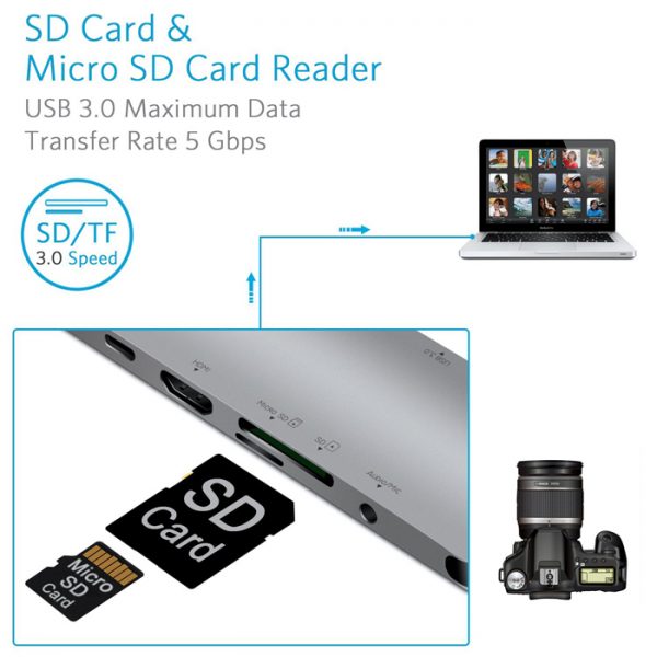 - Versatile Instant Expansion Plug-and-play, and supports hot-swapping or hot-plugging, multi-platform compatible, Auto Switch Between Bus Powered and Power Delivery Powered Mode, Instantly adds 3xUSB3.0 Port, 1 USB 3.0 TF/SD Card Slot, 1 HDMI 4K@30Hz, 1 RJ45 1000M Ethernet port, 1 Power Delivery PD2.0 Port